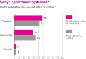 Suomalaiset tuntuvat uskovan vedyn mahdollisuuksiin. Tämä ilmenee Iro Researchin lokakuussa teettämästä tutkimuksesta, johon vastasi tuhat suomalaista. Tutkimuksen tavoitteena oli selvittää suomalaisten tietämystä vedystä ja suhtautumista vetyyn. Vastaajista yli puolet (53 %) oli täysin tai jokseenkin samaa mieltä väittämän kanssa siitä, sitä, että vedyn myötä Suomella on mahdollisuus olla sekä teknisenä että taloudellisena edelläkävijänä Euroopassa vetytalouden käyttöönotossa. Samoin 49 % uskoi vetyyn siirtymisen vähentävän hiilijalanjälkeä ja ”puhdistavan maapalloa”. Vedyn tuomien hyötyjen uskottiin ulottuvan laajaan kohderyhmään. Yli kolmasosa uskoo, että vety voi tuoda hyvinvointia maakuntiin sekä siihen, että vedyn työllistävä vaikutus Suomessa on tulevaisuudessa merkittävä. Noin 40 % oli puolestaan täysin tai jokseenkin samaa mieltä myös siitä, että vety voi parantaa Suomen kansainvälistä kilpailukykyä.